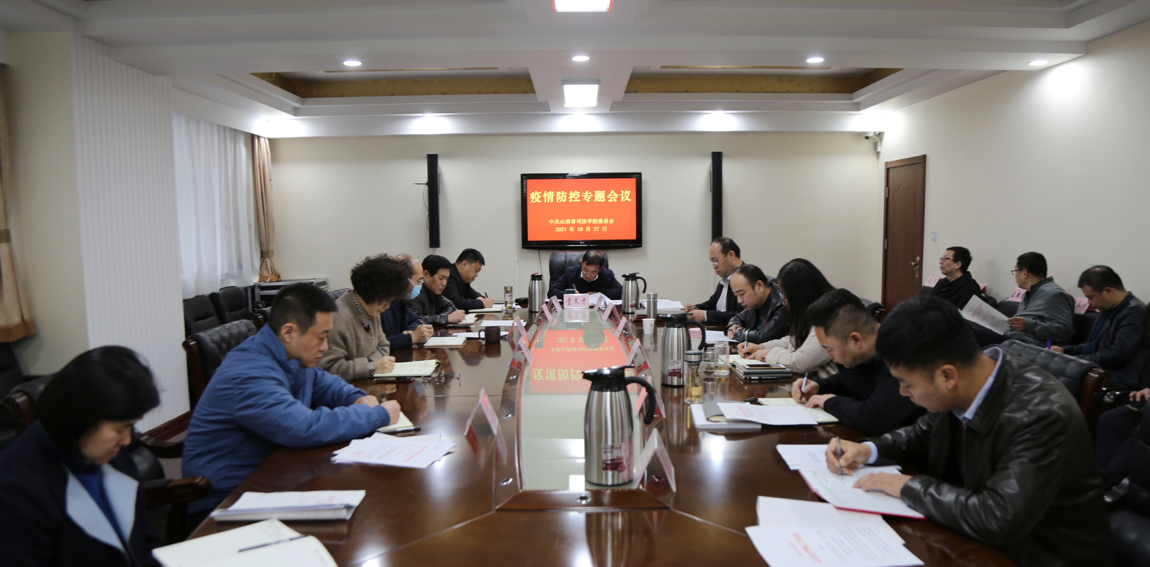 10月27日,山西省司法学校召开疫情防控专题会议。党委书记、校长董文才主持会议,党委委员、纪委书记马莉,党委委员、副校长张斌、杨双荣及全体中层干部参加会议。会议...